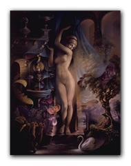 Tormented and thwarted by the inanimate ideal of the most beautiful woman, the king made a vow which was to change his life. He locked himself in the temple and there prostrated before the altar of Aphrodite he beseeched her nine days for the granting of a boon. Aphrodite well knew the nature of the king's desire, long before the mantle of priestly kingship draped his newly born days, the immortals tended the planting of his desire. And so King Pygmalion during his prayerful vigil increasingly entreated the diety to bestow life on the object of his love. Daily his bequest grew bolder, till finally on the ninth day he pleaded with Aphrodite to indwell his statue with her own life and love and, as the story goes, the boon was granted and the statue came to life.